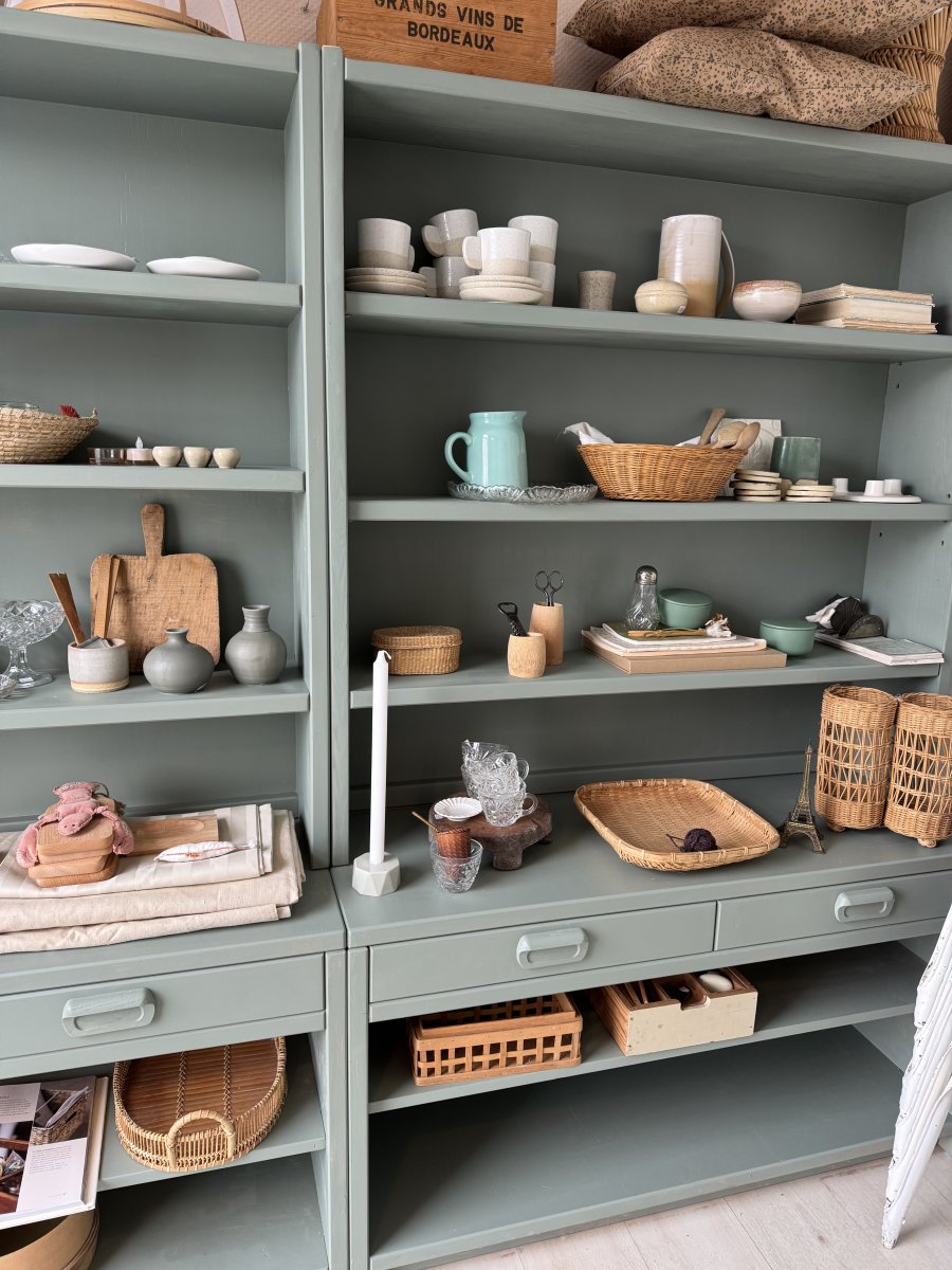 Støvet grå-grønne reoler, pris for begge 2