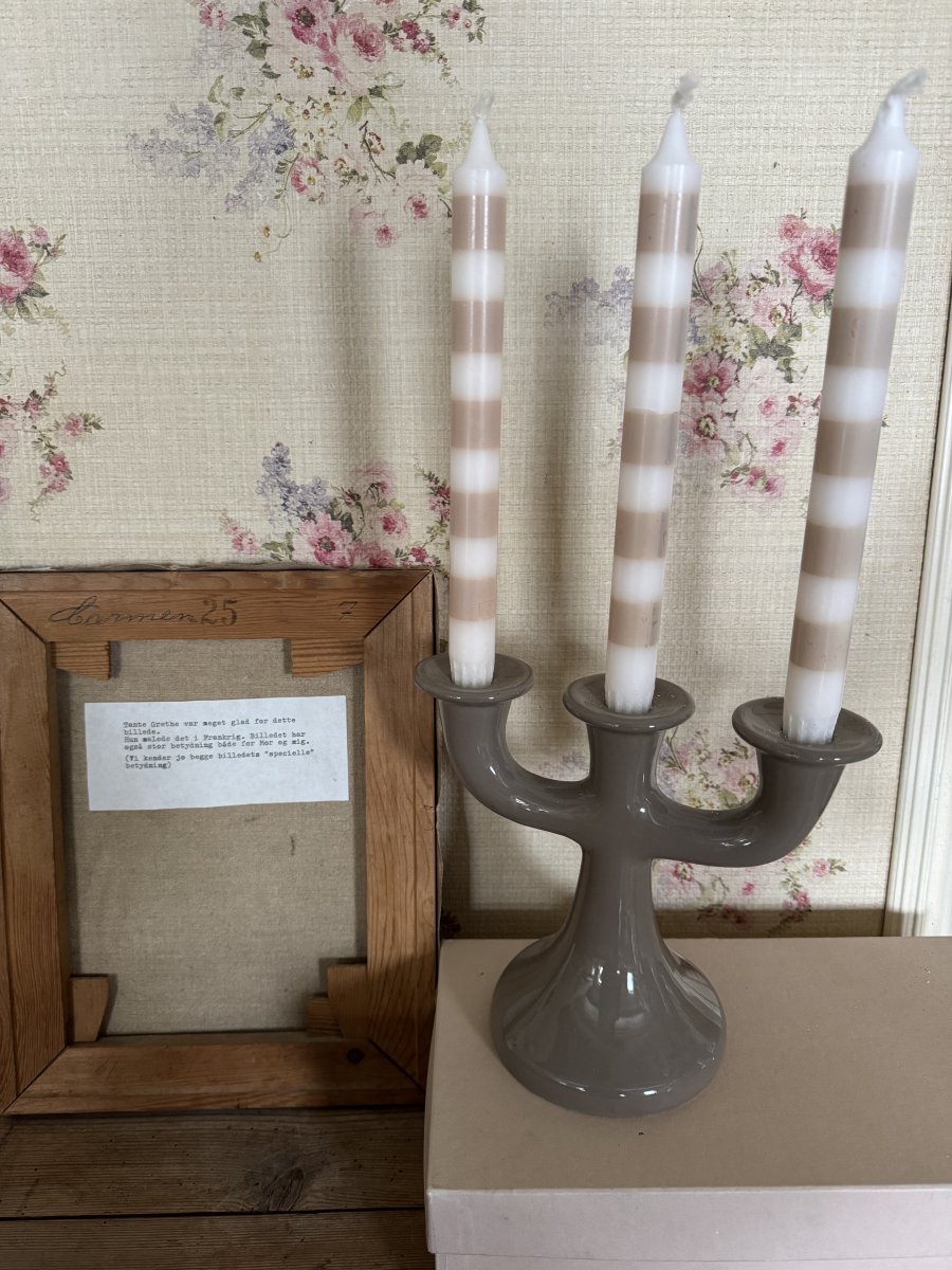 Tre-armet lysestage i lerfarve